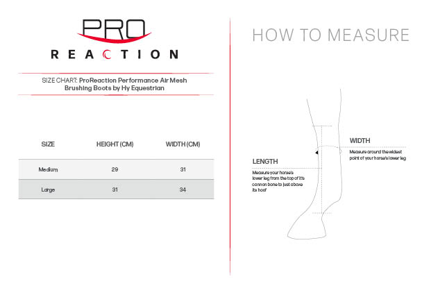 Introducing the ProReaction Performance Air Mesh Brushing Boots. Innovatively designed using a unique 3D honeycomb interlaced mesh fabric that utilises temperature regulation and capillary action technology to optimise airflow and moisture wicking, allowing for constant cooling and reducing the risk of overheating. The shock absorbing and high impact inner strike pad offers the best protection for your horse no matter what the activity, whilst remaining lightweight and highly flexible permitting your horse full range of movement. The luxury super soft faux fur edging not only looks the part but improves comfort and reduces the risk of rubbing. Fastened with strong and durable touch tape fastenings with rubber logo to make them easy to put on and take off.