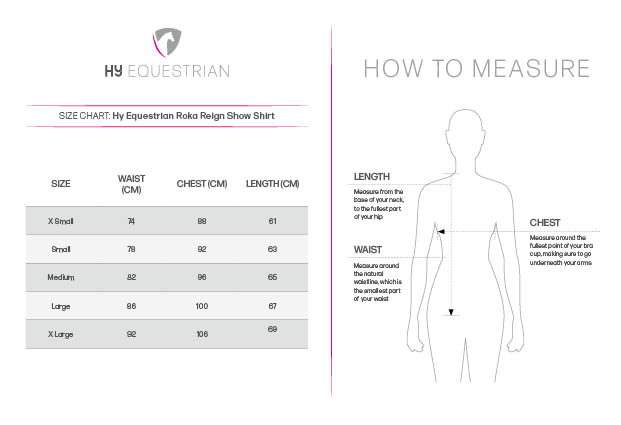 Designed to deliver performance without compromising on elegance, the Hy Equestrian Roka Reign Show Shirt is a must-have for any rider’s competition wardrobe. Crafted from breathable, lightweight fabric with four-way stretch, this shirt offers a close, flattering fit while allowing complete freedom of movement in the saddle. The moisture-wicking, quick-dry material keeps you cool and comfortable under pressure, making it ideal for long show days. Featuring a smart, crisp collar and subtle diamante design accents, the Roka Reign Show Shirt blends classic show-ring style with modern functionality. Whether you're competing in dressage, jumping, or eventing, this shirt combines performance-focused features with timeless design to help you look and feel your best in the ring.
